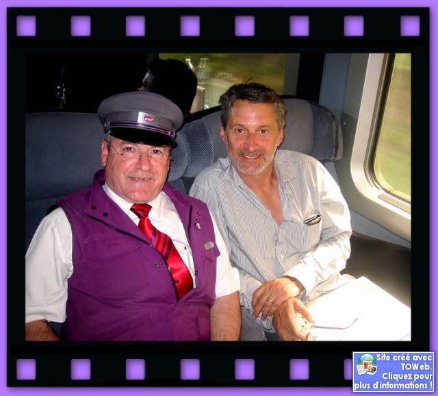 TGV 8844, entre les gares de Bordeaux et Paris Montparnasse, Jeannot se fait photographier avec Antoine De Caunes, homme de télévision polyvalent, présentateur, producteur humoriste, acteur, scénariste et réalisateur de cinéma
